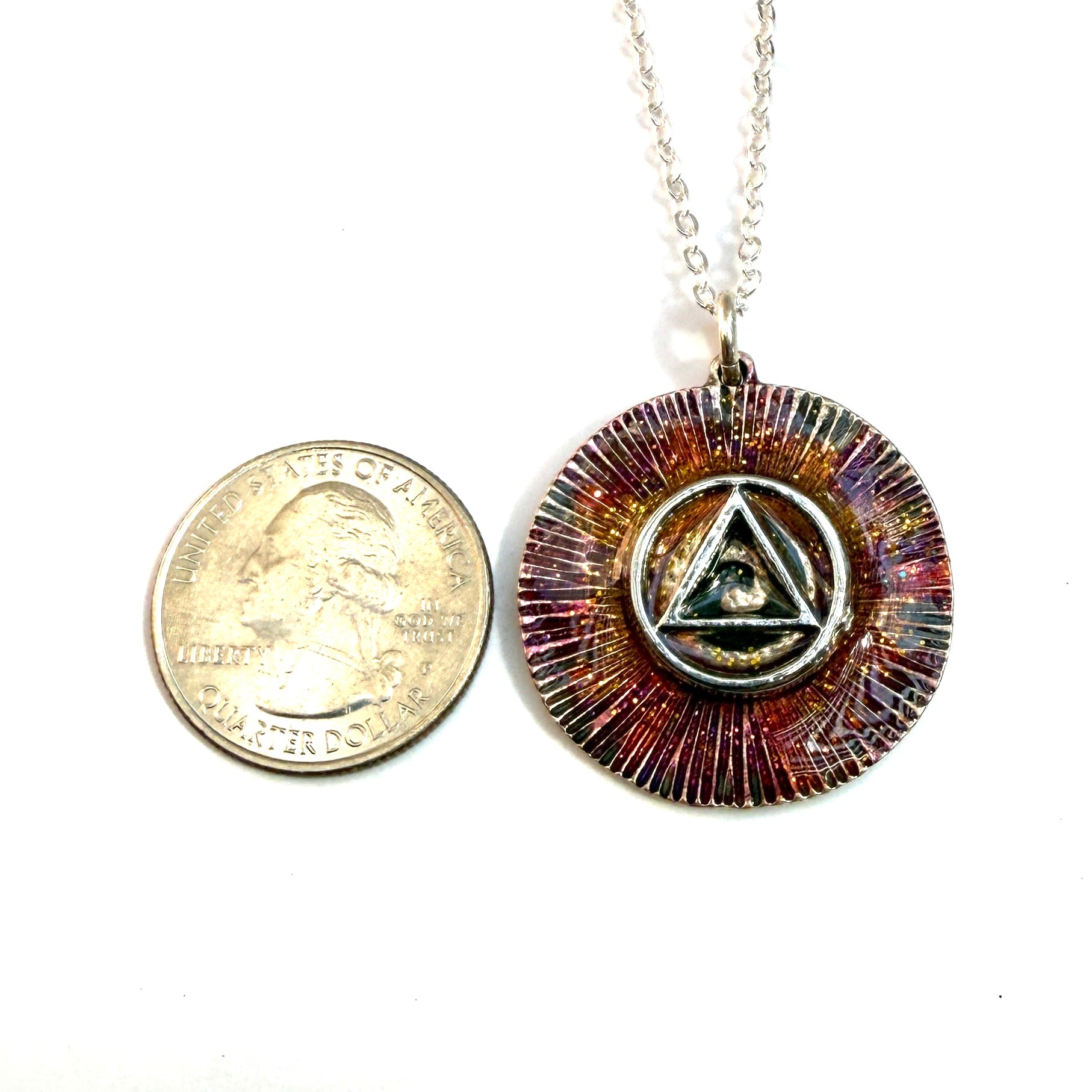 One-of a- Kind hand painted sobriety pendants are unique, handcrafted pieces of jewelry designed to symbolize and celebrate your journey in recovery. Hand painted with crystal clear resin by Michelle b