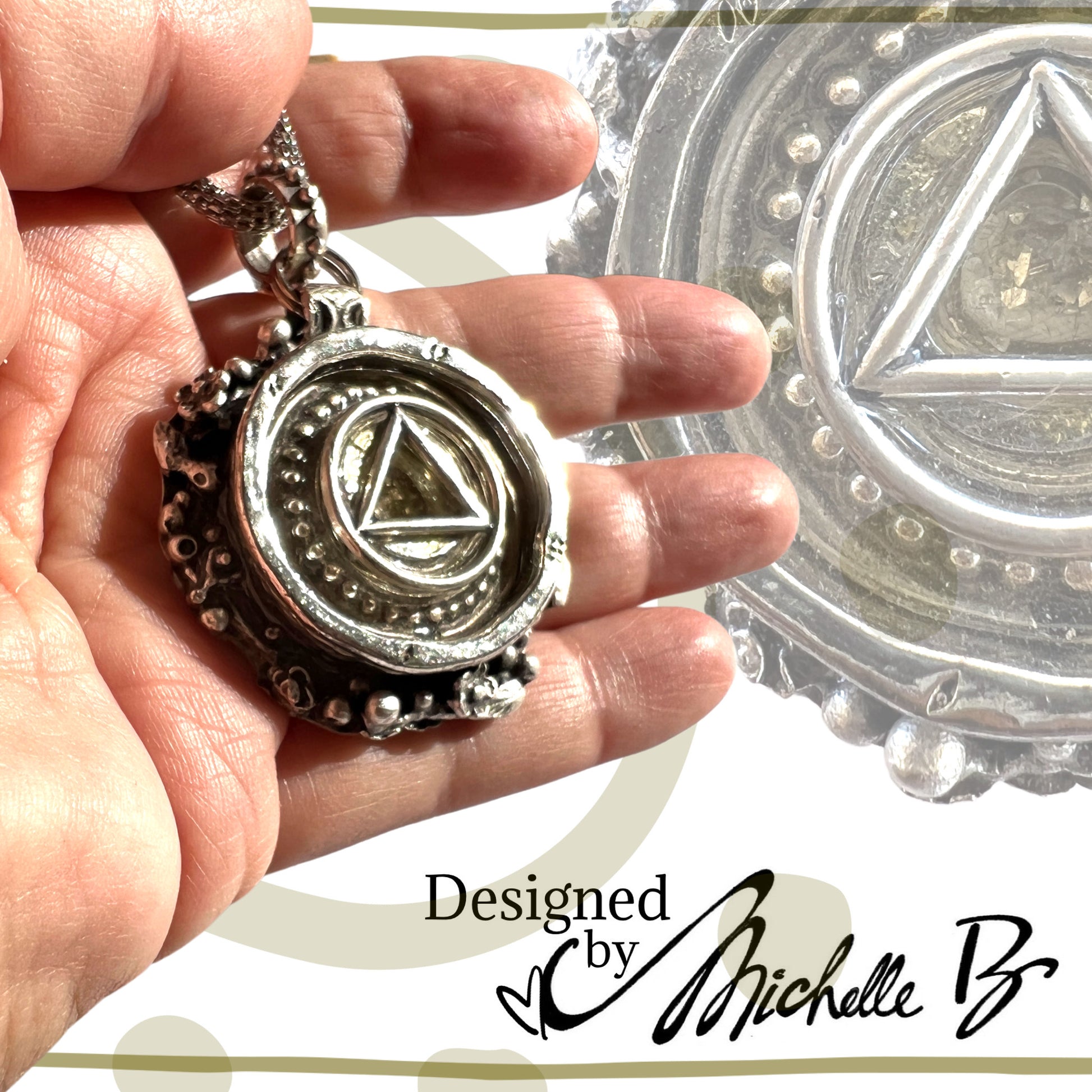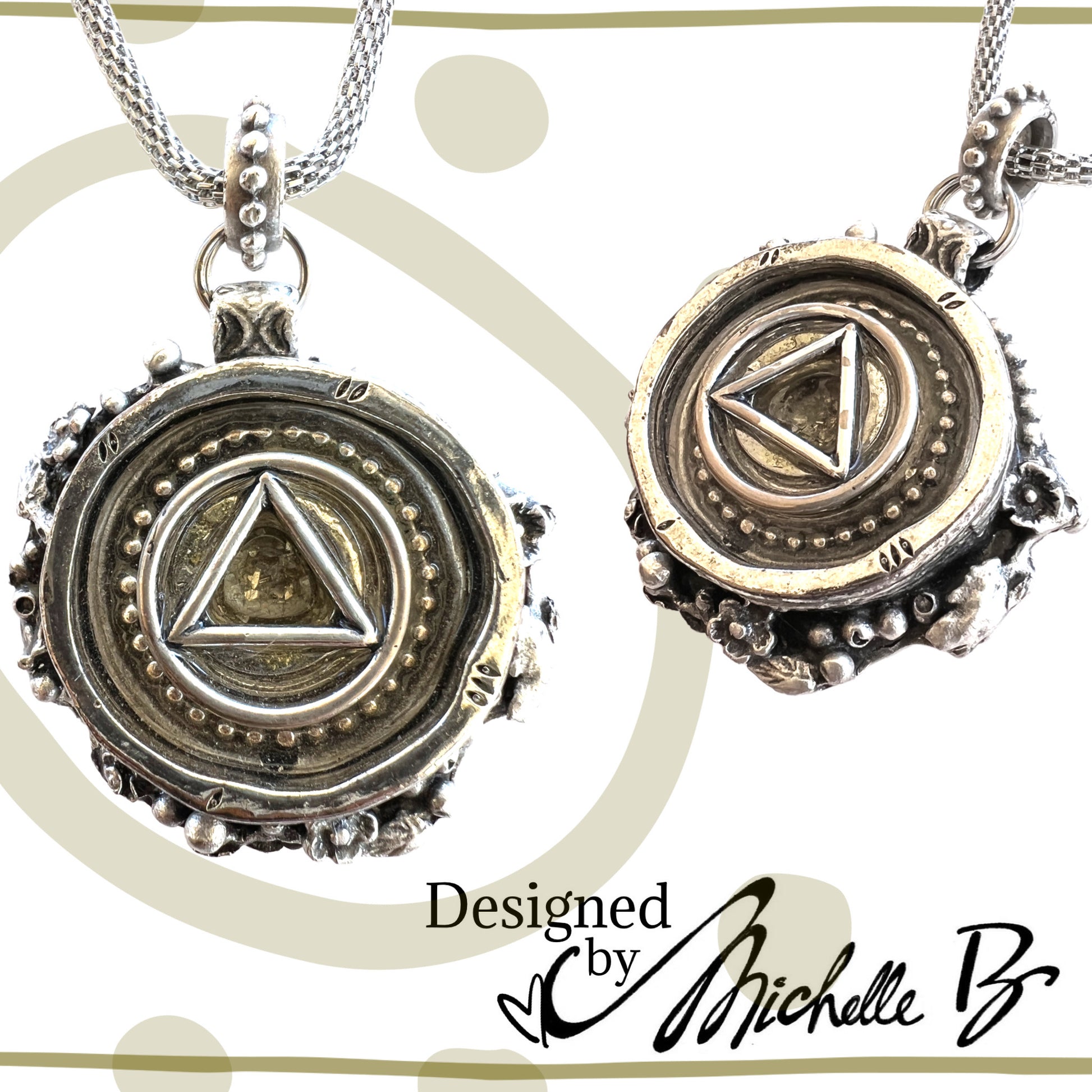Tribal with a Floral Flare is a mixed metal Pendant necklace with resin. This design is a True One of A Kind piece! It has a hint of gold in the background with an etched design. You are sure to enjoy this beautiful work of art -just as I enjoyed creating it Adjustable chain 18”- 22”